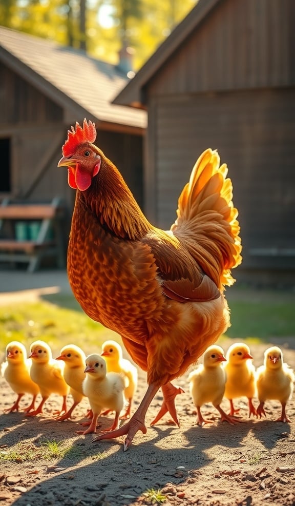 In den folgenden Wochen entwickelte sich Gertrud zur strengsten, aber liebevollsten Hühnermutter des ganzen Landkreises. Sie führte ihre acht Küken über den Hof wie eine Generalin ihre Truppen. Alle mussten in einer Reihe laufen. Keiner durfte sich zu weit entfernen. Und wehe, jemand wagte es, ihren Küken zu nahe zu kommen!