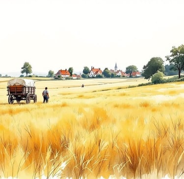 "Schönes Wetter für die Ernte", sagte Josef schließlich. Heinrich nickte. "Ja. Wenn es so bleibt, sind wir morgen fertig." Sie schauten über die Wiese. Die goldenen Haufen leuchteten in der Sonne.