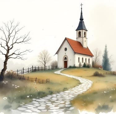 Die Kirche stand auf dem kleinen Hügel. Ihre Turmspitze ragte in den hellen Himmel. Friedrich und Liesel stiegen die Stufen hinauf. Das alte Holzportal stand offen. Von drinnen wehte kühle Luft heraus, gemischt mit dem Duft von Weihrauch und Bienenwachs.