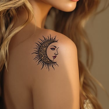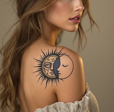 Symbolik: Sonne und Mond zusammen symbolisieren Balance, Dualität, die Vereinigung von Gegensätzen. Sie erinnern daran, dass beides existieren muss – Licht und Schatten, Freude und Schmerz.
