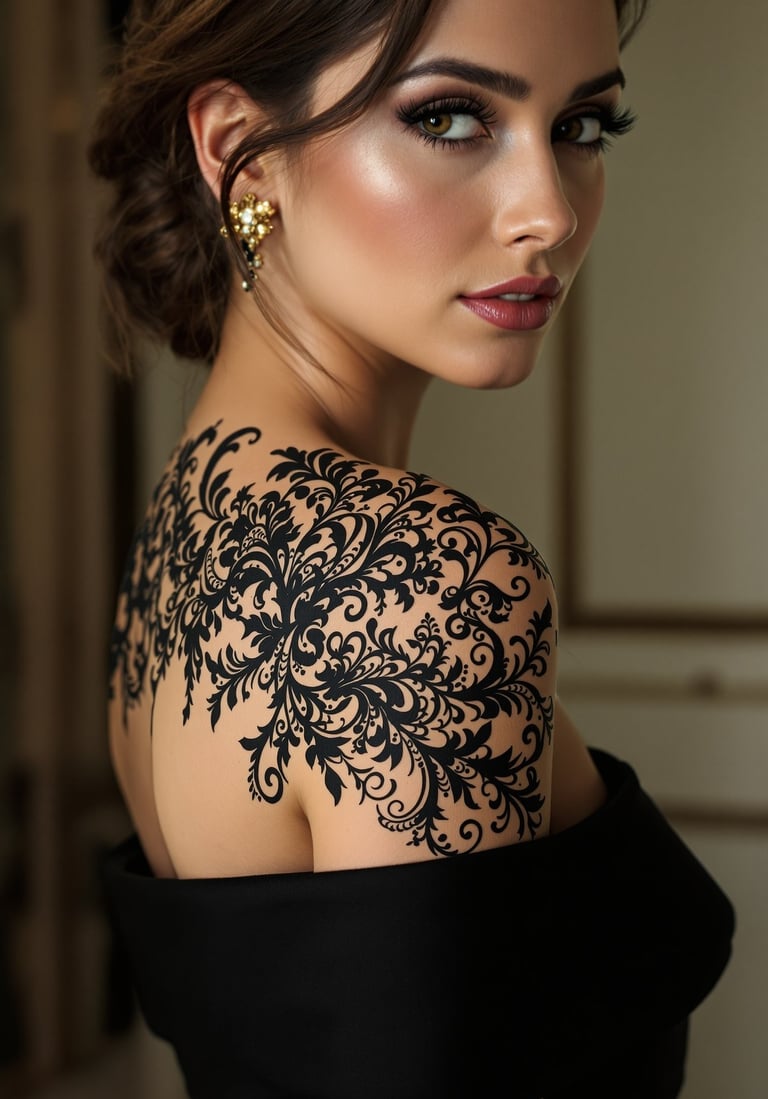 Stil-Match: Passt perfekt zu einem eleganten, klassischen Style. Perlenohrringe, Seidenkleider, High Heels – das Tattoo wird zum Teil eines raffinierten Gesamtbildes.