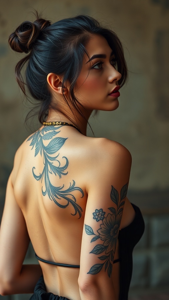 Symbolik: Der Jugendstil feierte die Schönheit der Natur in stilisierter Form. Diese Tattoos verbinden natürliche Eleganz mit künstlerischem Design.